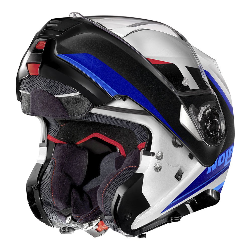 Its compact size (thanks to the availability of two outer shell sizes), double P/J homologation, an ultra-wide visor, VPS sun screen (adjustable in various positions and fitted with the automatic retraction system), Air booster Technology upper ventilation system, rotation of the chin-guard with elliptical motion, exclusive double action chin guard opening mechanism, Micro lock double lever retention system with micro-metric adjustment, innovative Clima Comfort padding (with micro-perforated fabrics) and set up for the N-Com communication system make the N100-5 one of the reference point flip-up helmets for the most demanding of motorbike tourists.